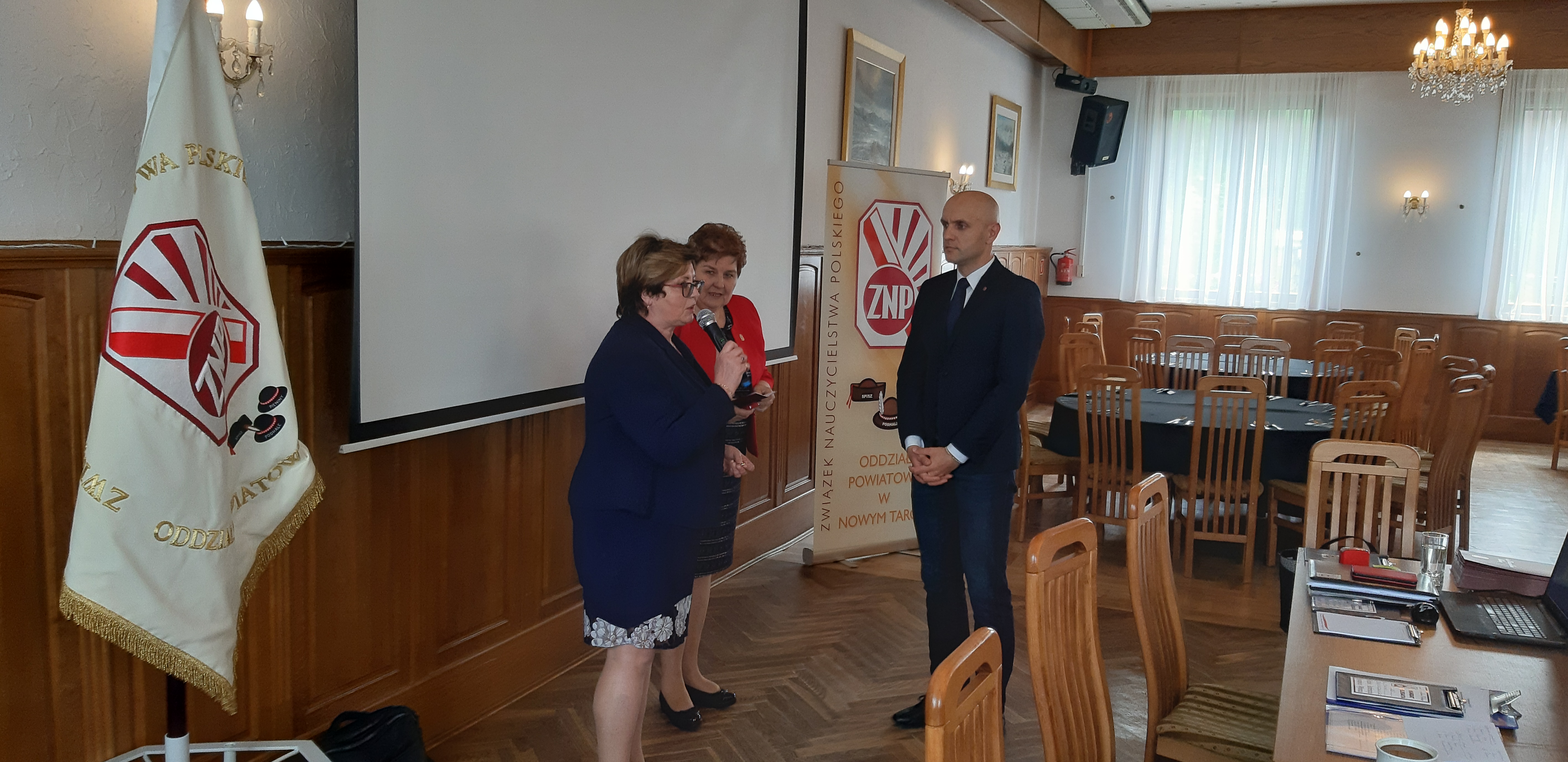 Ważnym punktem spotkania było wręczenie najwyższego odznaczenia związkowego „Złotej Odznaki ZNP” wyróżnionym członkom. Otrzymali je: Marcin Domin, Ewa Groblicka, Teresa Domin, Alicja Chamuczyńska i Katarzyna Domin. Nie obyło się także bez podziękowań i gratulacji za aktywną pracę w kadencji 2014 – 2019. Szczególne podziękowania od byłej pani prezes Romualdy Prośniak i „Złotą Odznakę ZNP” otrzymał Wójt Gminy Nowy Targ p. Jan Smarduch za wspieranie działań oświatowych w gminie.