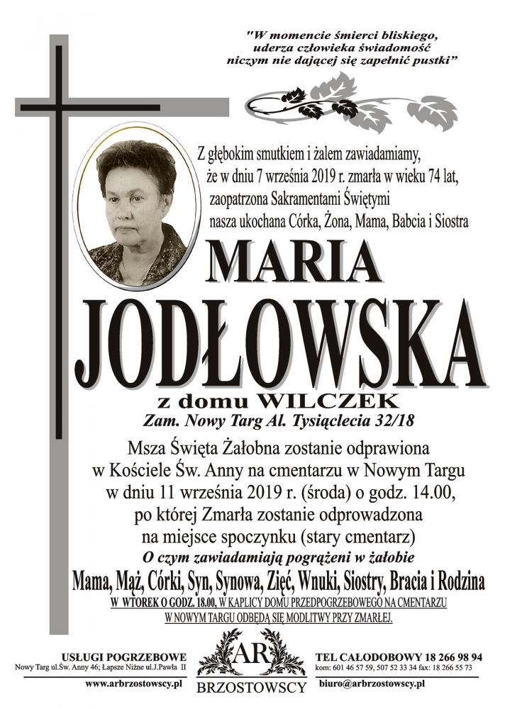 Ze smutkiem informujemy, że dnia 7 września 2019 roku zmarła mama naszej koleżanki, Wiceprezes Oddziału, Haliny Jodłowskiej.