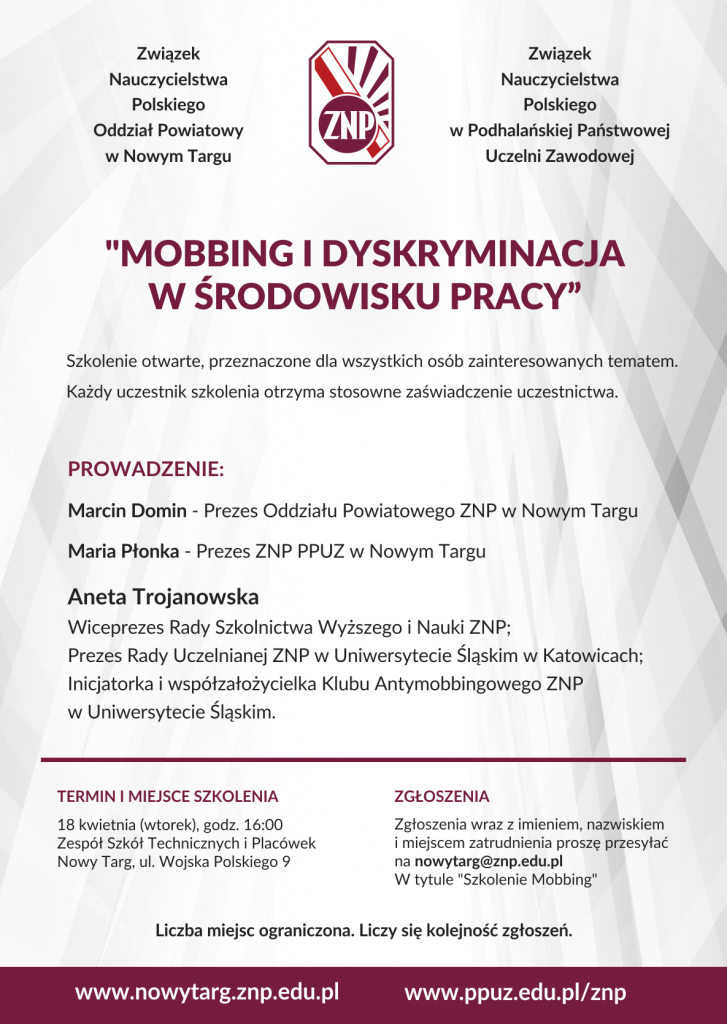 Mobbing i dyskryminacja w środowisku pracy – szkolenie