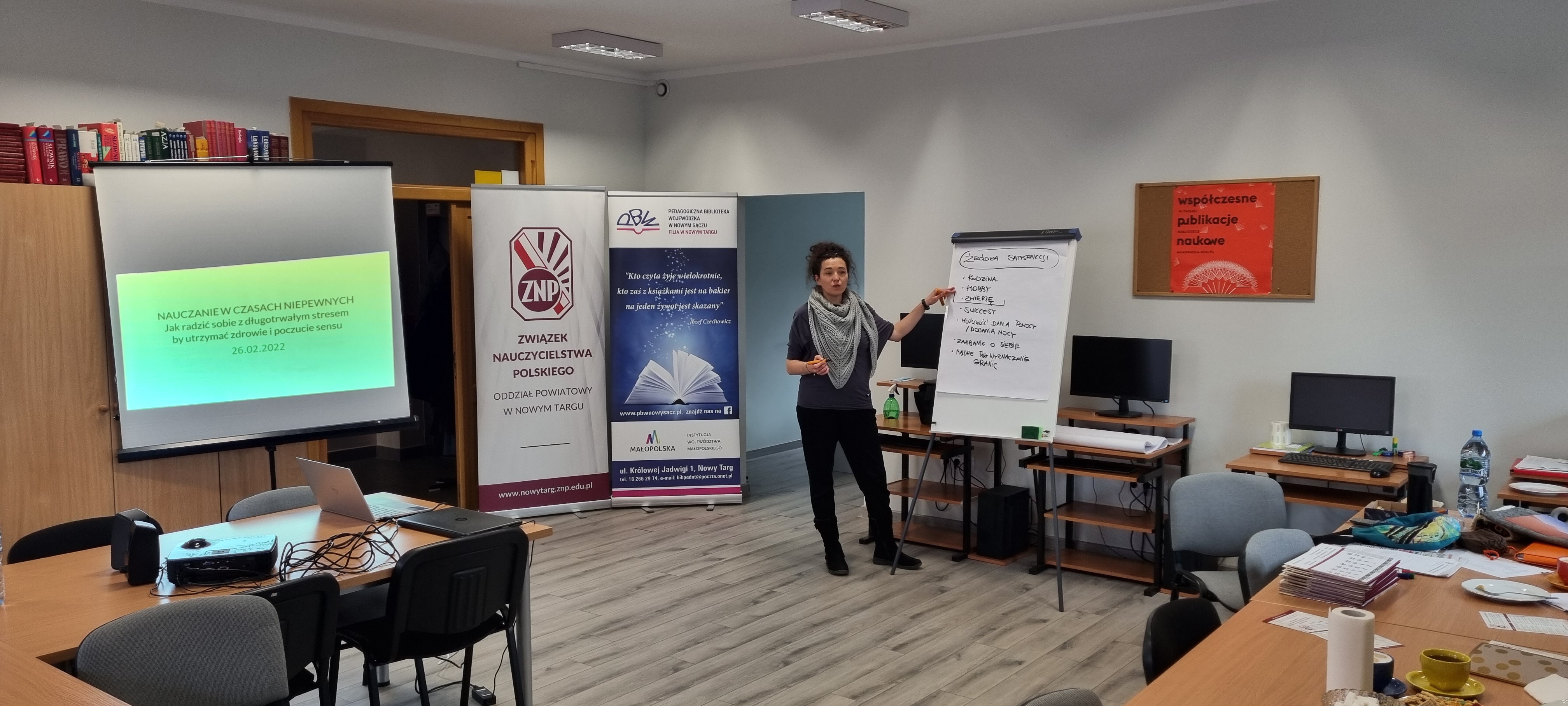 26 lutego w Domu Nauczyciela w Nowym Targu, odbyły się organizowane przez Związek Nauczycielstwa Polskiego przy współpracy z Pedagogiczną Biblioteką Wojewódzką filia Nowy Targ, warsztaty dla nauczycieli pt. „NAUCZANIE W CZASACH NIEPEWNYCH czyli jak radzić sobie z długotrwałym stresem, by utrzymać zdrowie i poczucie sensu wykonywanej pracy”.