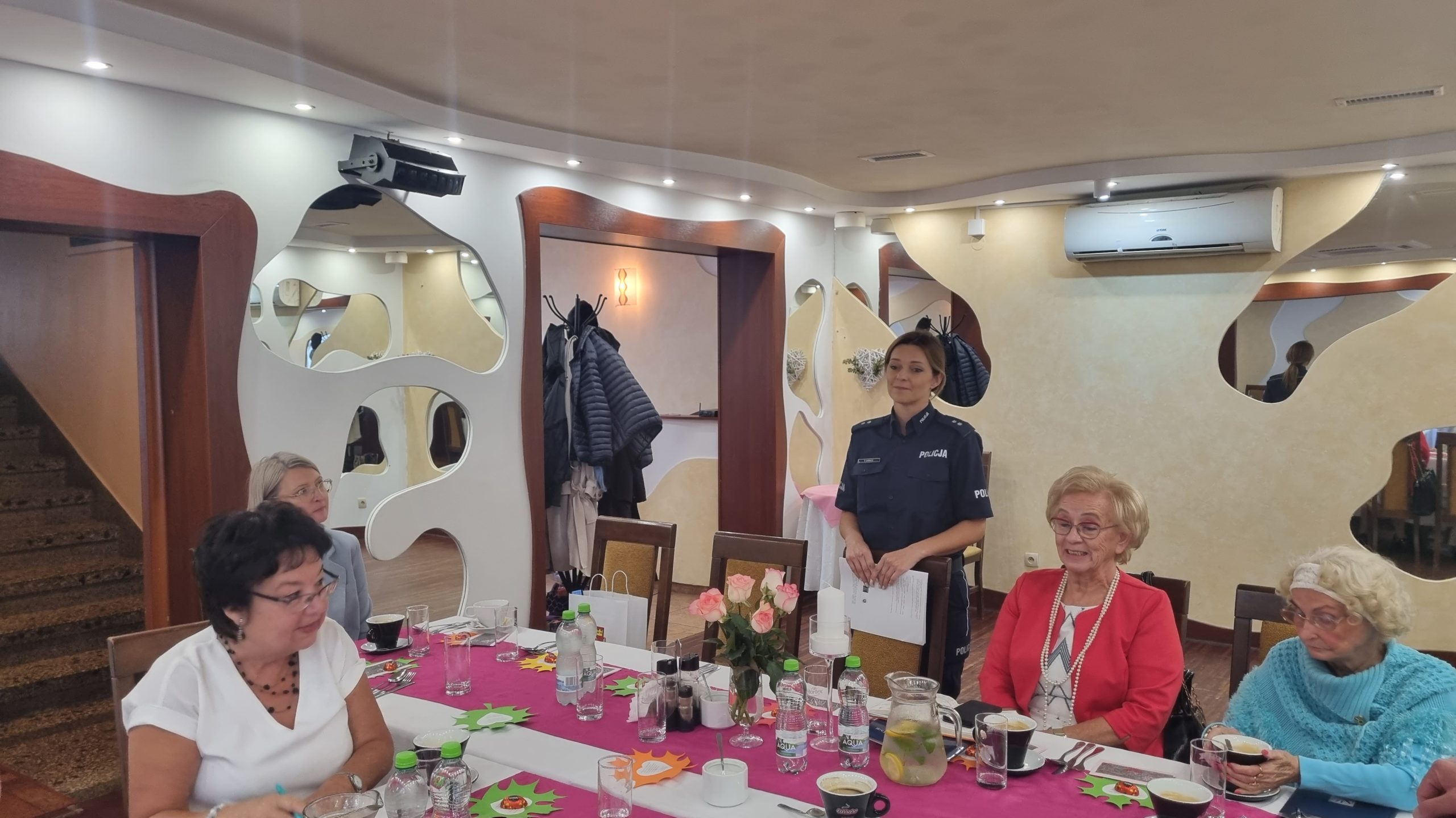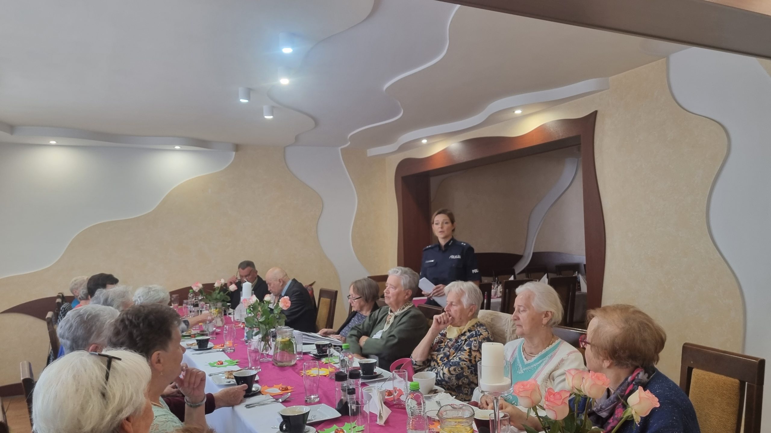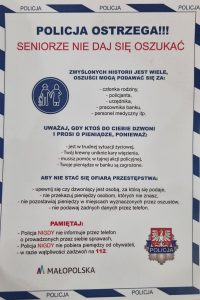 Zgromadzeni wysłuchali prelekcji pani podkomisarz Doroty Garbacz z Powiatowej Komendy Policji w Nowym Targu, na temat zagrożeń wynikających z działalności oszustów, którzy podając się za członka rodziny próbują wyłudzić pieniądze od osób starszych.